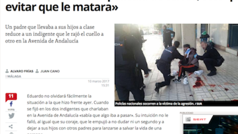 Den 53-årige spanier blev hjulpet på hospital Carlos Haya af paramedicinerne, der var blevet tilkaldt. Manden røg direkte på operationsbordet for skaderne i halsen.