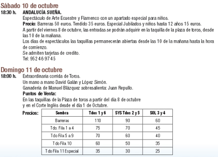 - Pris: 10 til 15 euro. Billetter købes i Casa de la Cultura eller i døren, fra den 7. oktober om eftermiddagen.