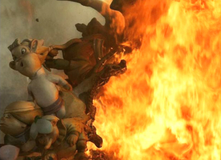 Den sidste aften afbrændes de mange Fallas-figurer overalt i byen. Ilden har renset det gamle væk - noget nyt kan skabes...
