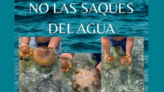 Eksperter beder strandgæster i Málaga om at respektere den helt uskadelige vandmand, der - på grund af udseendet - er kendt som huevo frito - spejlæg.