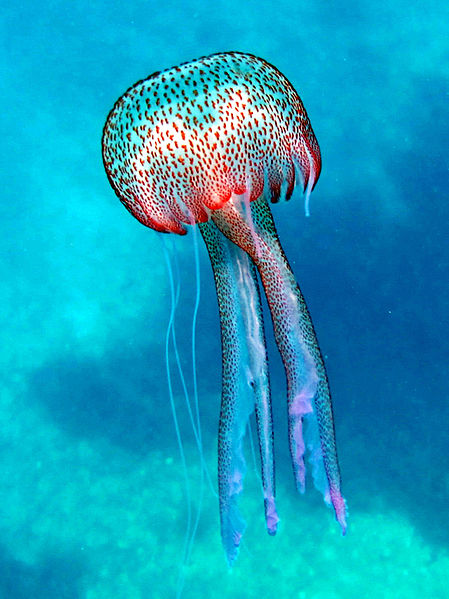 Den har tentakler, der kan være meget lange og tynde, så de er vanskelige at se.