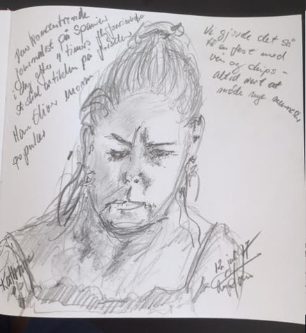 Måske var det ikke ubetinget ud af venlighed, men også lidt af frygt. I hvert fald lavede Erik denne tegning af en meget vred journalist (der er i gang med at skrive denne her artikel):