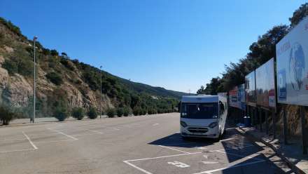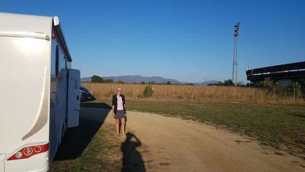 Campingpladsen i Figueres. Vi håber solen står op over bjergene i morgen tidlig...