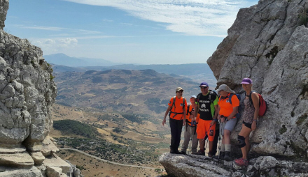 Artiklens forfatter (th) med vandregruppe på El Torcal