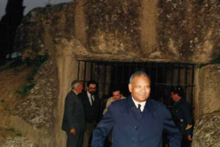 Amadou-Mahtar M’Bo besøgte stendysserne i 1986 sammen med daværende Antequera-borgmester, Pedro Rojas Tapia