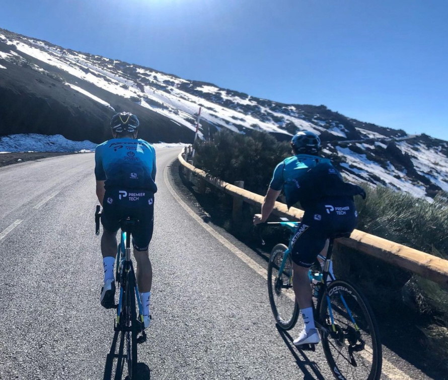 Astana-rytteren cyklede rundt på Teide-bjerget i den fineste februar-sol - i første omgang...