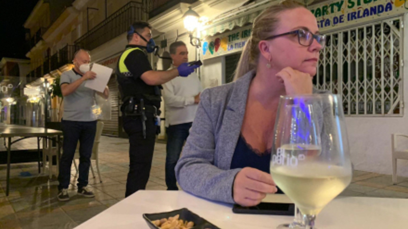 Så klokken 00:00-dut træder jeg ud af døren og går op til min veninde, Rina, der holder og venter i bilen lidt oppe ad gaden. Jeg sætter mig ind på bagsædet i den modsatte side af Rina, begge med masker på og så af sted ned gennem de mennesketomme gader i Fuengirola.