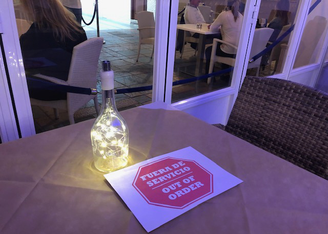 Bordene indenfor er alle ‘ude af funktion’, mens den store indvendige patio også er åben for gæster.