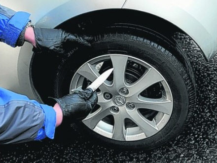 Ifølge theolivepress.es tog politiet manden på fersk gerning, da han var ved at punktere dækket på en parkeret bil.