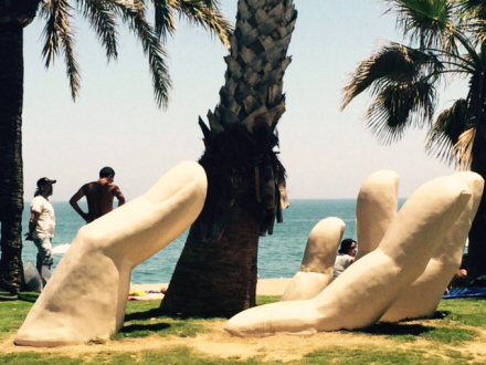 Der er også kommer meget mere kunst i gadebilledet omkring strandene. Blandt andet nogle helt fantastiske skulpturer af kæmpe store hænder, der “graver sig op” gennem oaser af græs.
