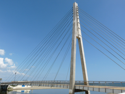 Broen, der forbinder stranden foran borgen med paseoen, der går helt ud til Los Boliches (foto: Rina Trap)