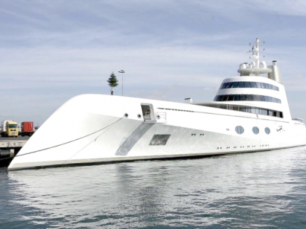 Fartøjet er blevet døbt det genkendelige navn ‘A’, er til dels bygget af aluminium og indeholder det ene overdrevne element efter det andet.