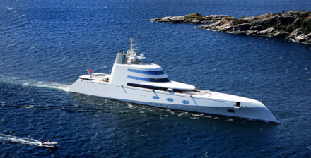 Når du ser giga-yachten første gang, vil du ikke rigtigt kunne fatte, at der er tale om et privatskib og ikke en militær-ubåd.