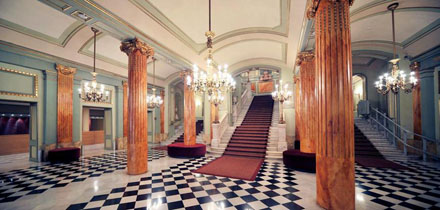 Man må fremhæve vestibulen og Spejlsalen, som ligger på første sal. De er blevet restaureret, men er de originale, som ikke blev ødelagt under nogen af brandene.