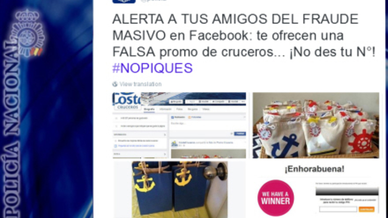 Brugerne bliver omdirigeret til en hjemmeside, hvor de får at vide, at de kan vinde præmiepakker herunder 1.000 euro i kontanter, fem billetter til et krydstogt og en T-shirt med logoet for Costa Cruceros. Det spanske rejseselskab skulle angiveligt stå bag kampagnen.