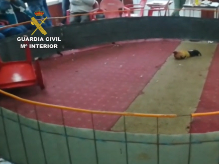 Guardia Civil efterforsker lige nu 23 personer for ulovlig besiddelse af effekter til hanekampe, efter man slog til mod et gammelt hotel i Montijo, Badajoz.