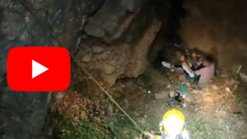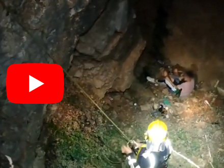 VIDEO: Redningsfolk i Málaga måtte rykke ud, da en kvinde styrtede flere meter ned i en hulrum i klippen, da der skulle tages billeder med klassekammeraterne.