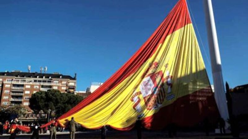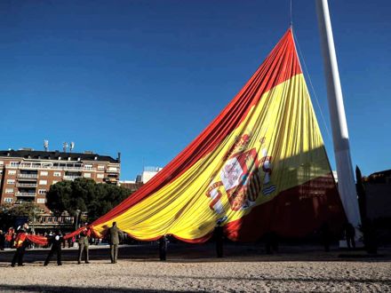 Det spanske flag, der hejses er ikke mindre en 300 m2 stort og vejer 35 kg. Ni militærfolk holder det under hejsningen, så det ikke rør jorden.