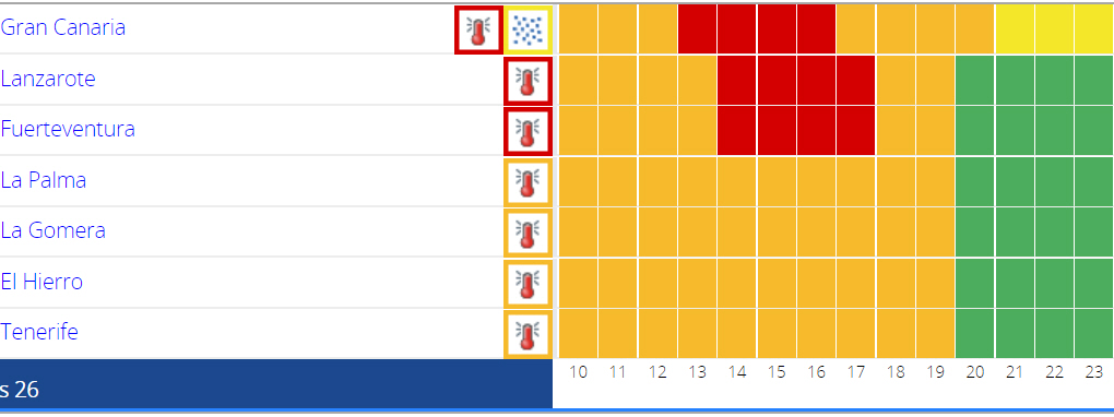 Byrådet i Las Palmas de Gran Canaria aktiverer fra i dag klokken 10:00 den maksimale alarmsituation på grund af høje temperaturer og deraf sundhedsfare.