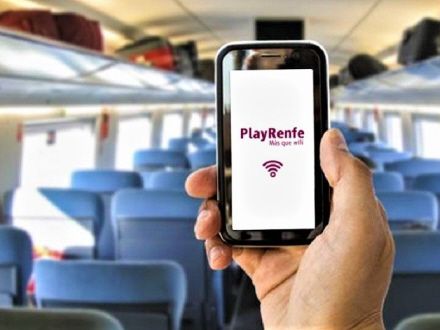 Jernbaneoperatøren Renfe tilbyder tjenesten gennem PlayRenfe-programmet herunder også tv med live-sportsbegivenheder, filmpremierer, serier, musik og bøger.