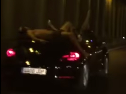 VIDEO: Bilist på motorvejen spærrede øjnene op, da han fik øje på en halvt afklædt mand, der lå oven på en bil i fuld fart.