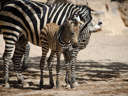Ligesom sidste år var det hun-zebraen Bom, der blev mor som den første. Og så kan vi altså godt finde klaphatten frem. Hun kom nemlig til den valencianske zoo i 2007 fra Københavns Zoo. Her er hun en del af en avlsgruppe med andre hunner og den flotte han Zambé, der i 2012 ankom fra Safari i Peaugres i Frankrig.