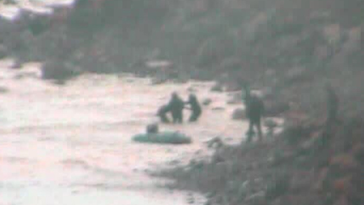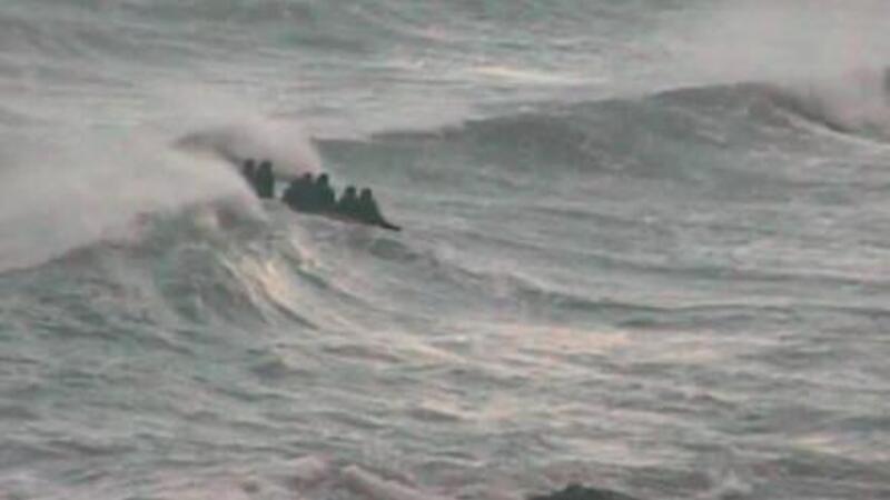 DRAMA TIL SØS: Fem betjente kom i livsfare for at redde immigranter i havsnød. Dramatiske billeder er blevet udsendt af redningsaktionen.