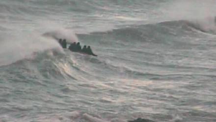 Havet var i oprør, og den lille jolle kæntrede midt mellem brænding og klipper. Immigranterne blev slynget ud i det frådende hav.