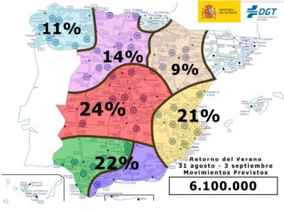 Generaldirektoratet for Trafik, DGT, advarer trafikanter om, at der fra i dag klokken 15:00 og frem til klokken 24:00 søndag den 3. september er særligt meget trafik på de spanske veje.