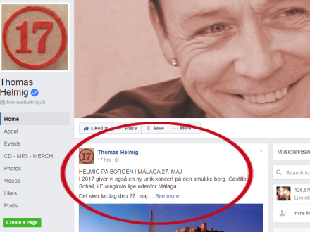 Og nu har Thomas Helmig netop afsløret på sin facebookside, at han vender tilbage og givet koncert. Det sker helt præcis den 27. maj på den Castillo Sohail i Fuengirola lige uden for Málaga.