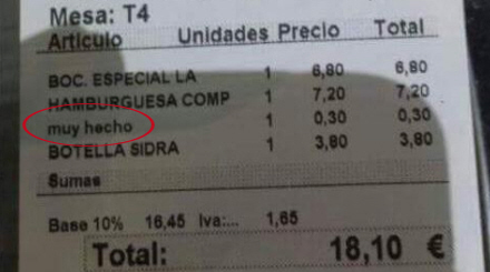 Enkelte restauranter er blevet taget i skilte med priser, der ikke inkluderer IVA, som svarer til moms. Den er på cirka 10 procent i Spanien. Men det er faktisk ulovligt for restauranter at gøre dette, selvom de måtte skrive at priserne ikke inkluderer moms.
