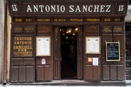 Antonio Sánchez er den ældste urenoverede taberne i Madrid og har bevaret intakte levn såsom de gaslamper, der tidligere oplyste lokalerne, flaske elevatoren fra kælderen og forskellige tyrefægtnings-smykker.