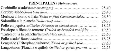 I dag er charmen i salonerne stadig intakt. Den traditionelle træfyrede ovn er den store juvel, som er ansvarlig for de berømte stege, herunder pattegris og lam på castiliansk manér.