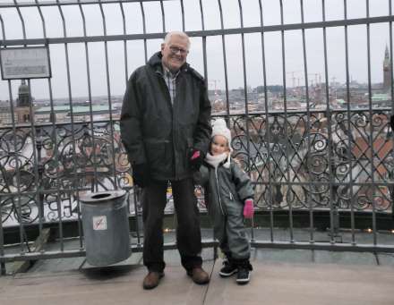 Morfar og Andrea på toppen af tårnet, der er fixpunktet for Danmarks geometriske opmåling