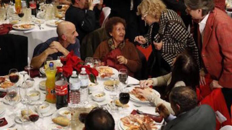 Dette år var anden gang, at middagen blev afholdt, og ligesom sidste år deltog også borgmester Manuela Carmena, der ønskede alle de hjemløse en glædelig jul, inden de kastede sig over lækkerierne.