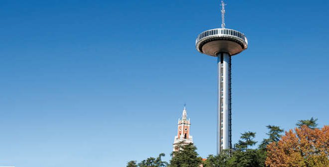 Panoramaelevatoren, der fører den besøgende 92 meter op til udsigtspunktet i Moncloa Fyrtårnet, står i hjertet af universitetsbyen i Madrid. Selve tårnet er 110 meter højt og blev bygget i 1992; året hvor byen blev udpeget som Europæisk Kulturhovedstad.