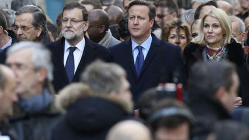 TERROR: Både den spanske og danske regeringsleder var i Paris, men der blev også demonstreret mange steder i Spanien.