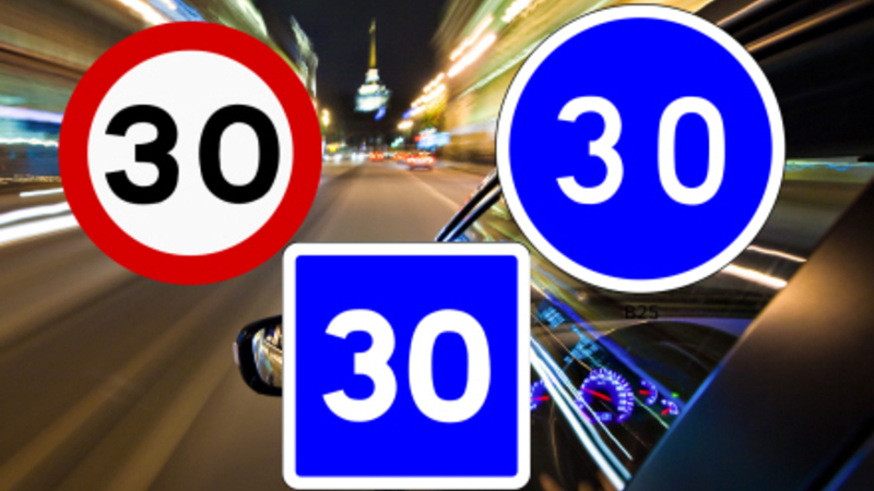 En sjælden gang kommer du også til at støde på et firkantet, blåt skilt. Det er den hastighed, du anbefales at køre på den pågældende strækning.