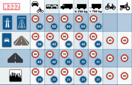 Skiltene på de spanske veje har både forskellige farver og former, og det betyder forskellige ting. De mest almindelige er selvfølgelig dem, der angiver en form for hastighed.