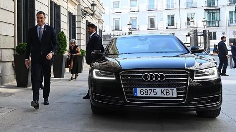 video: Premierministerens bil er en pansret Audi A8 L, der blev anskaffet af forgængeren, Mariano Rajoy, i 2017 for 500.000 euro.