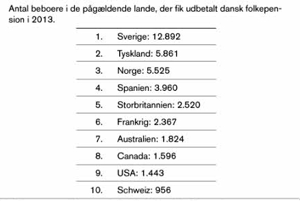 Ifølge Udbetaling Danmark - og det er altså dem, der udbetaler pensionerne - var der i 2014 3.911 folkepensionister og 633 førtidspensionister, der var residente i Spanien - altså i alt 4.544 mennesker eller cirka seks gange færre, end DR påstår.