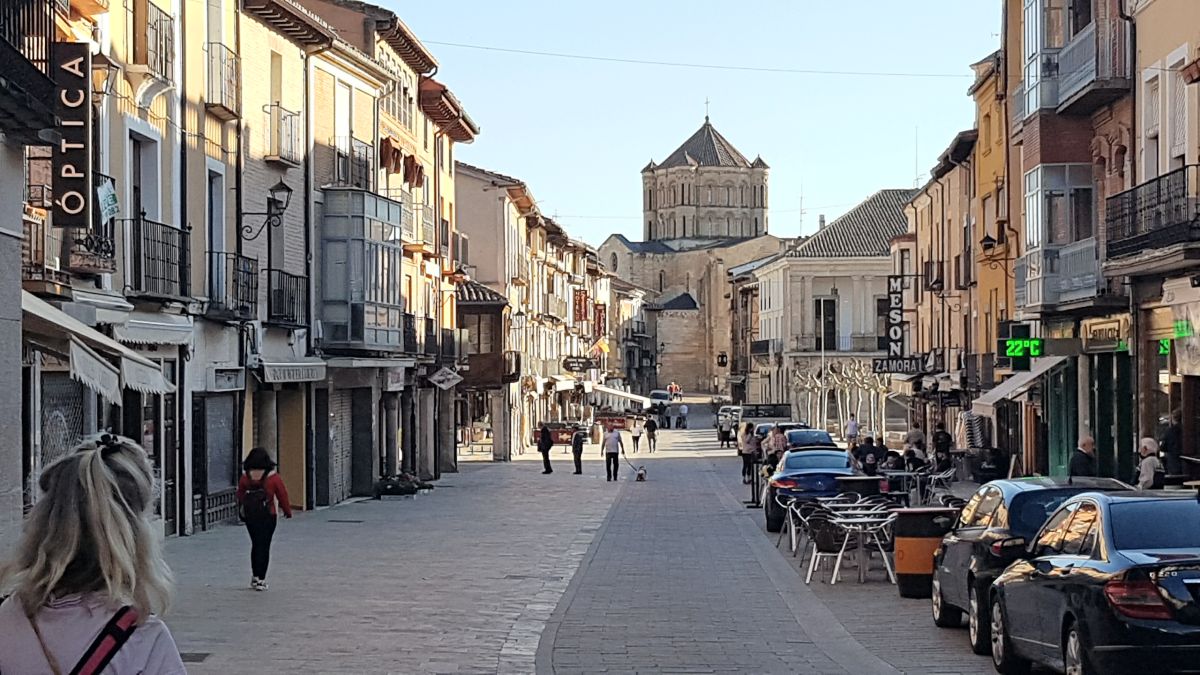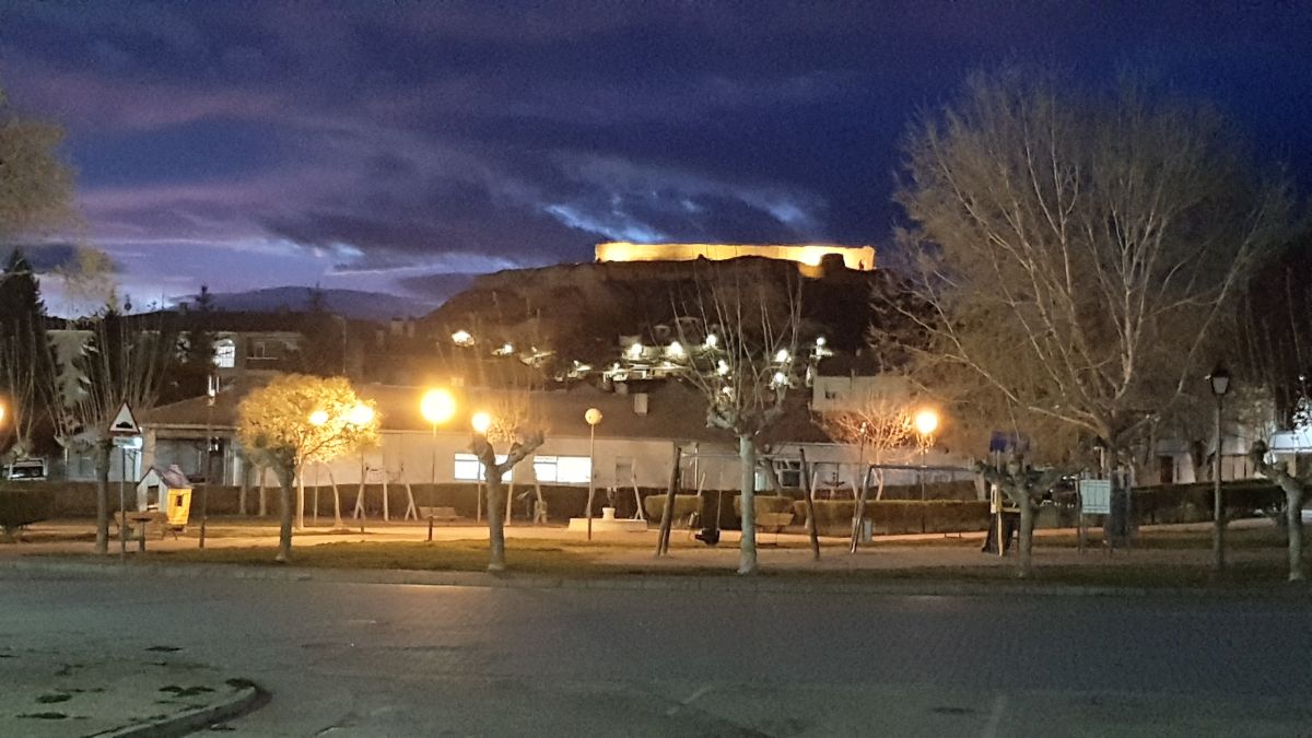 Vi holder ind i Aranda. Efter aftensmaden stilner regnen af og ved 21- tiden går vi en frisk tur i byen. At være turist er ikke så sjovt når det er koldt og vådt alle steder. Camperpladsen er en del af en større parkeringsplads, som er i brug det meste af natten. Vi må sove når vi bliver gamle...