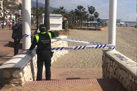 Allerede lørdag lukkede politiet for adgang til stranden - her i Fuengirola