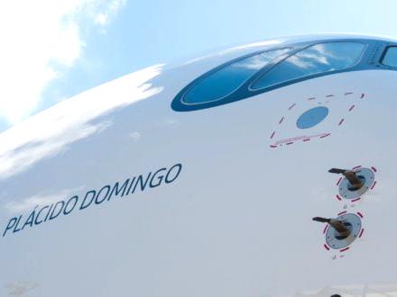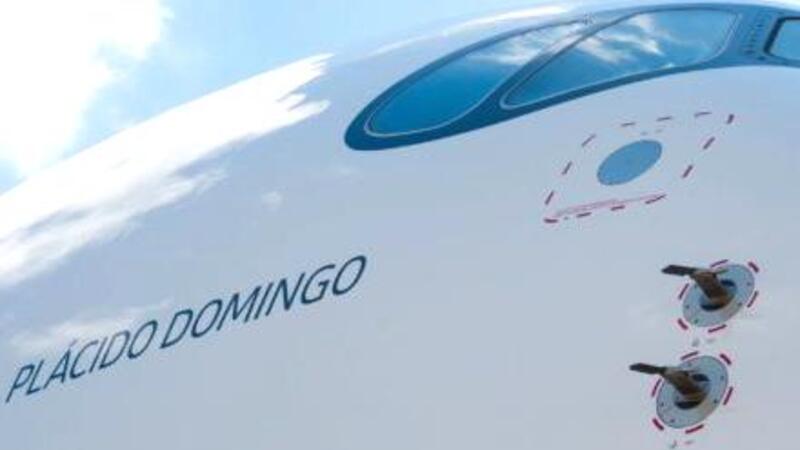 Tirsdag landede Iberias første eksemplar af den nye Airbus A350 XWB i Madrid. Flyet er døbt Plácido Domingo i respekt for den store sanger og komponist.