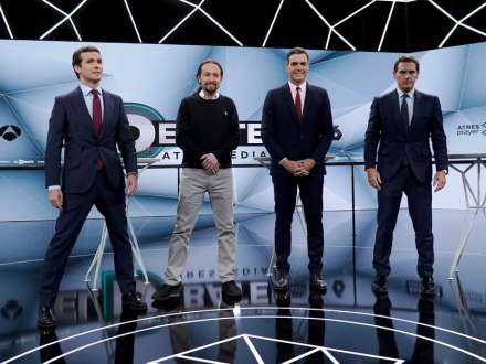 Pablo Casado (PP) og Albert Rivera (Ciudadanos) røg i totterne på hinanden for at vinde stemmerne i Kongressens højre side, plus de kritiserede Pedro Sánchez (PSOE) konstant i håb om at reducere hans forspring i meningsmålingerne. Pablo Iglesias (Podemos) indtog - ligesom i debatten mandag - rollen som den mest voksne og den, der gjorde seerne mindst forvirrede.