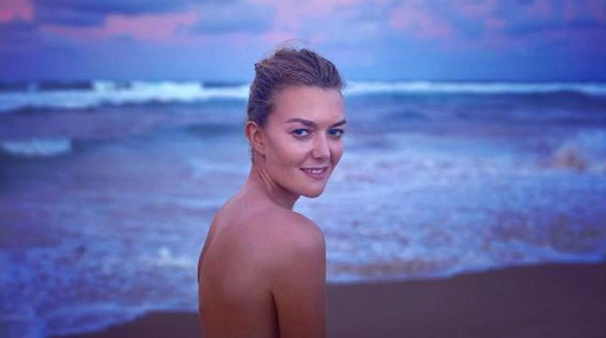 På billedet står Marta Ortega med ryggen til, tilsyneladende nøgen kiggende over skuldrene med et lille smil. Nøgenhed er et tilbagevendende tema i Sorrentis fotografier.