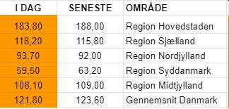 I henhold til Serum Instuttet er den gennemsnitlige incidens for hele landet på 121,80 og alle regioner i Danmark er ORANGE