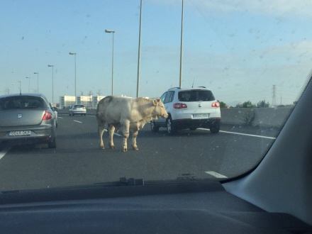 Mandag morgen omkring klokken ni kom en hvid ko slentrende ned ad V-30, og det gav små kødannelser, men ellers frem for alt overraskede bilister. Det skriver Lasprovincias.es