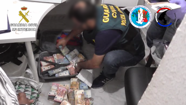 Det er menneskelige “mulddyr”, der stod for at fragte pengene til et sted i Marokko. Der fandt politiet poser og kufferter proppet med pengesedler.