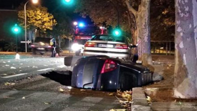 I sidste uge røg en Citroën med snuden først i et af slagsen, da vejen pludselig forsvandt under en bilist i Madrid. Læs mere her